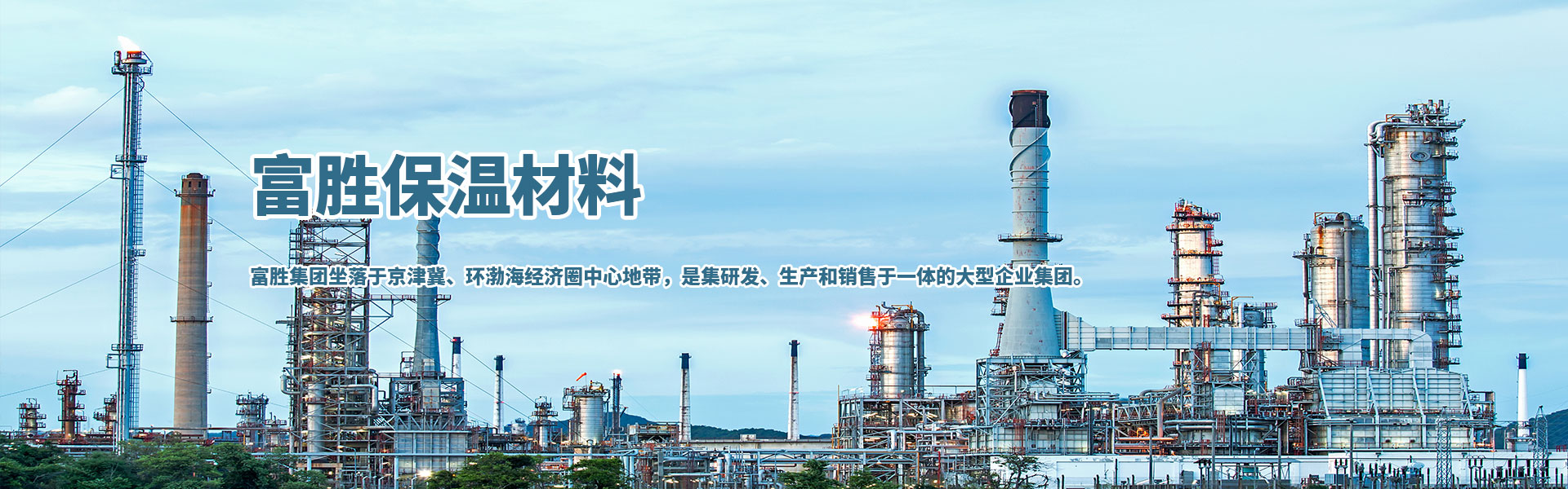 富勝集團坐落于京津冀、環渤海經濟圈中心地帶,是集研發、生產和銷售于一體的大型企業集團。下設五個分公司,八大產業園區,專業化生產橡塑絕熱保溫材料、離心玻璃棉、擠塑聚笨乙烯保溫板(XPS)、離子交換樹脂等保溫建材、化工產品,在全球倡導節能環保的今天,富勝集團以專業的生產技術和產業優勢,在綠色保溫建材行來獨樹一幟,卓越的品質、完善的服務、便捷的交通、快速及時的物流系統,使“富勝”牌產品覆蓋全國各省、直轄市和自治區,廣泛應用于大連北站、大連跨海大橋等項目。